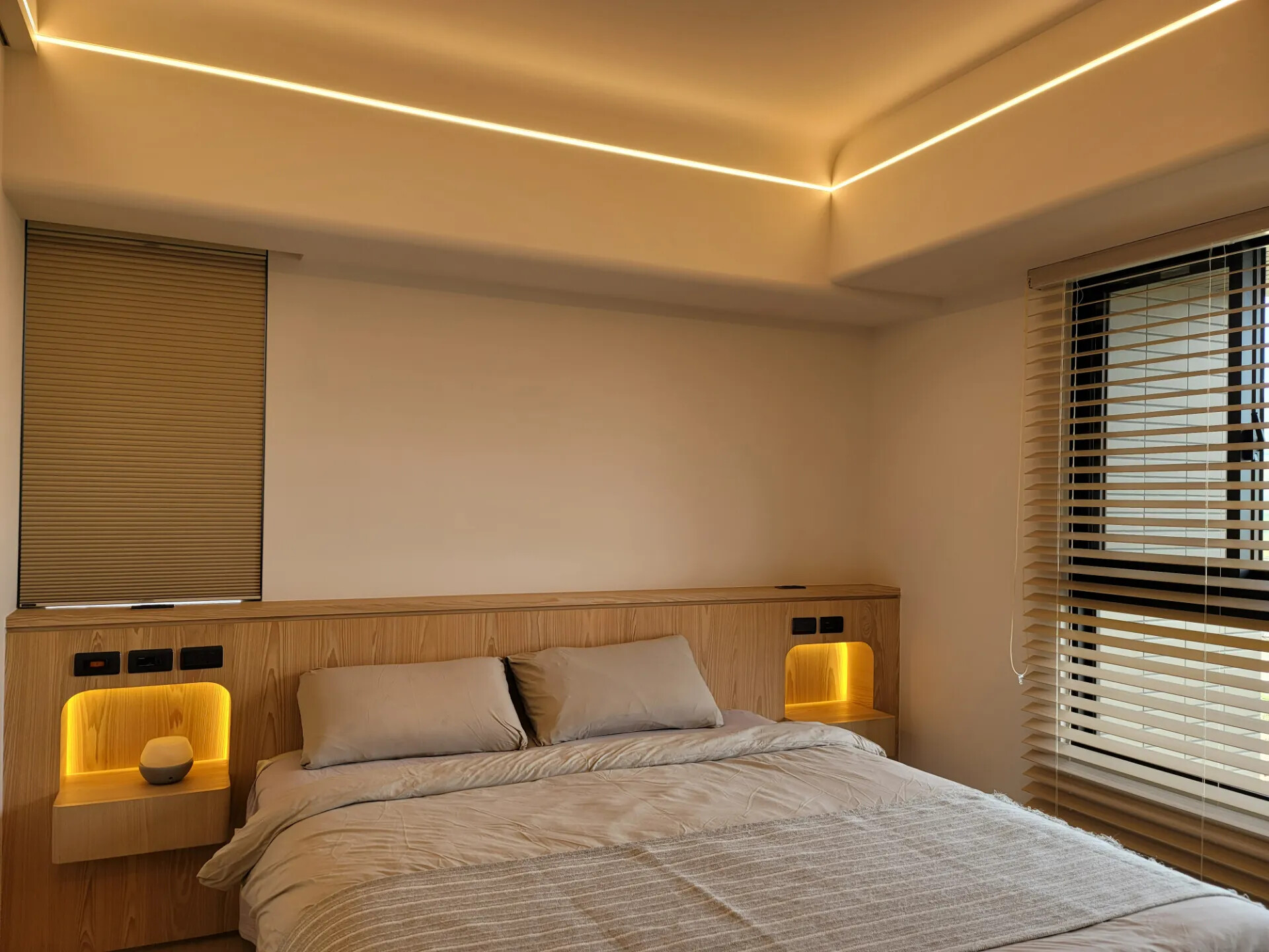 天花燈具採用線性燈具營造生活氛圍彷彿入住於飯店之內。