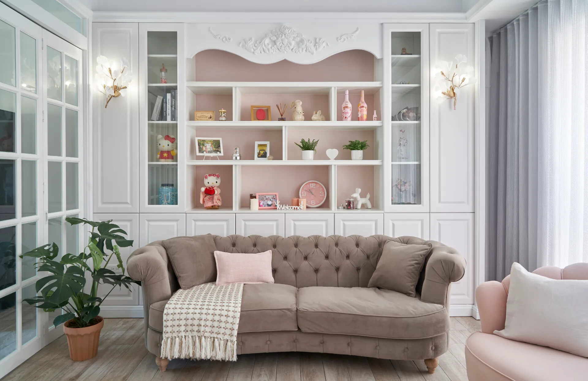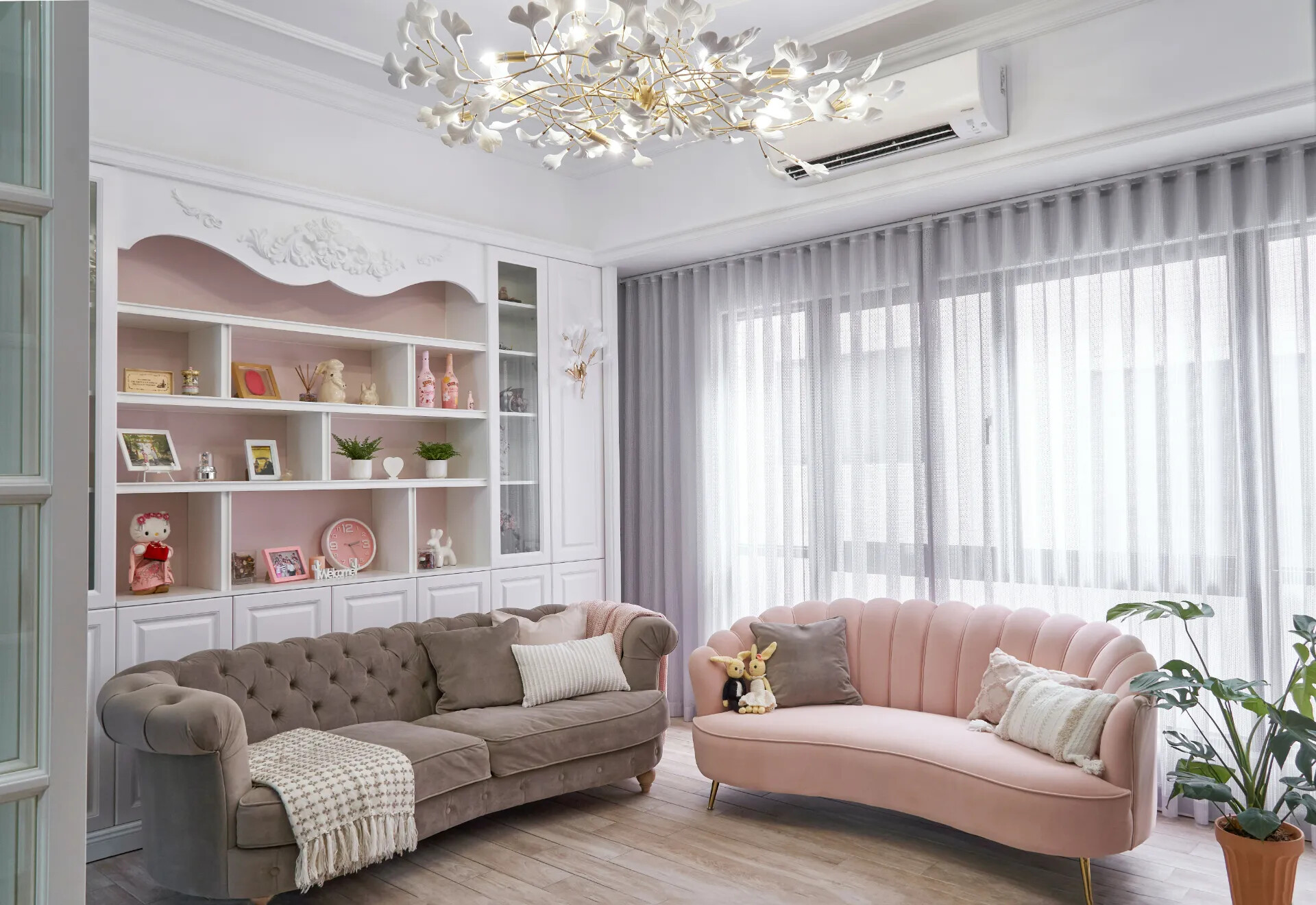 屋主偏好粉色,於是粉嫩又不失高貴典雅的家誕生了,充滿可愛跟溫馨的空間裡,藏了許多細節及設計祝福語彙。
