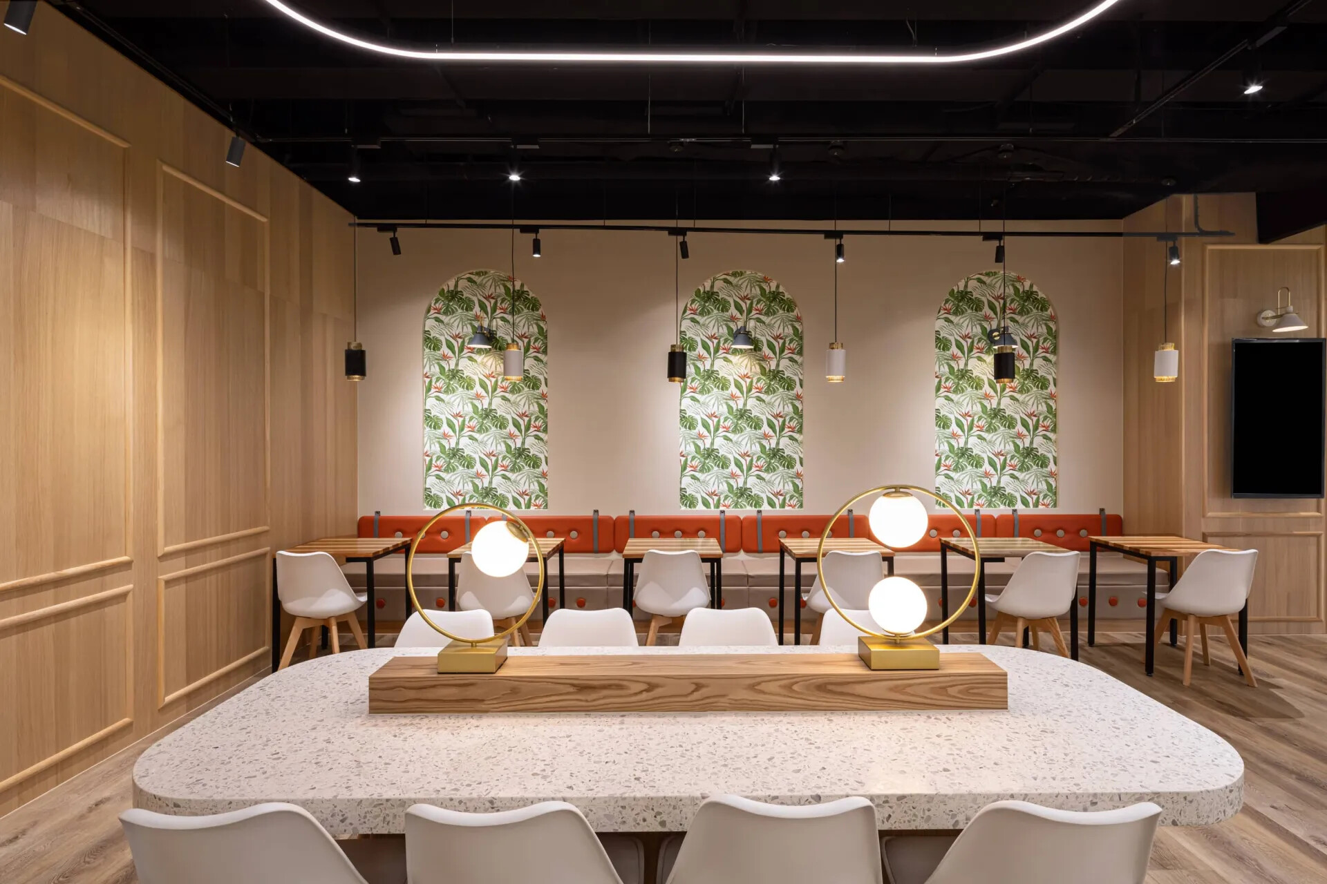 以彈性遊玩的方式為主軸,讓孩童享有自由遊戲的決定權,遊樂器材不再只是用來填滿空間,而能融合於室內裝潢,成為空間自然、隨興的設計之一,並且保留窗外的採光,將大自然送給每位貴賓的燦日融入情境中,使空間的缺點變成亮點,顯現外界天色變化,整體呈現不僅更自然,也能提醒孩童與家長遊玩的時間。