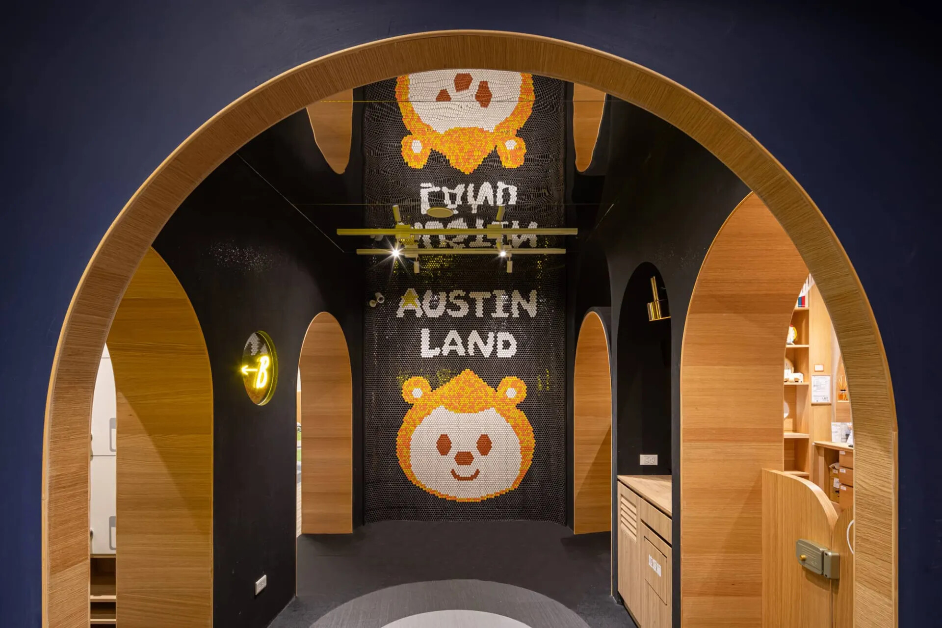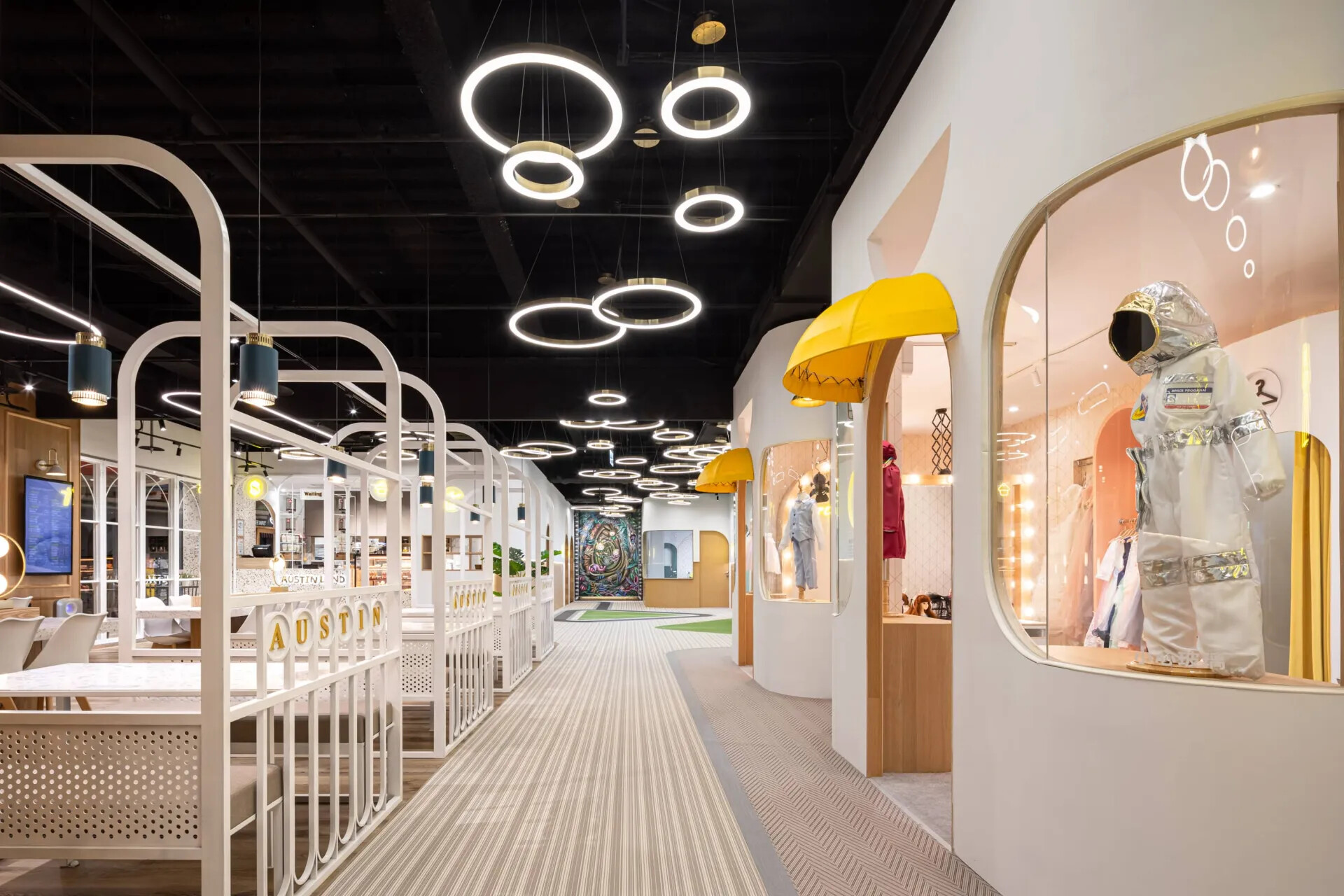 此空間為服務孩童遊玩的設施空間,在故事的背景設定中, 有許多重要的元素,例如歡樂能量、太空船、奧斯丁等,都如實地呈現在空間中,而最重要的設計在於「如何為孩童量身打造一個快樂園區」。