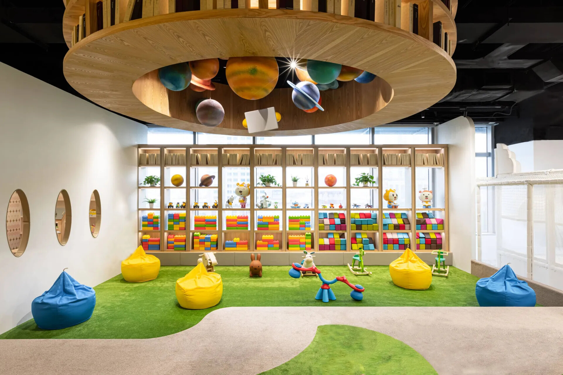 所有的角落都可以看到圓弧意象,它代表著孩童在嬉鬧間產生的歡樂能量,以「圓」、「無限」為設計概念運用在每個角落,減少直角、銳角,多了圓融與和諧,同時也提升空間的安全性。