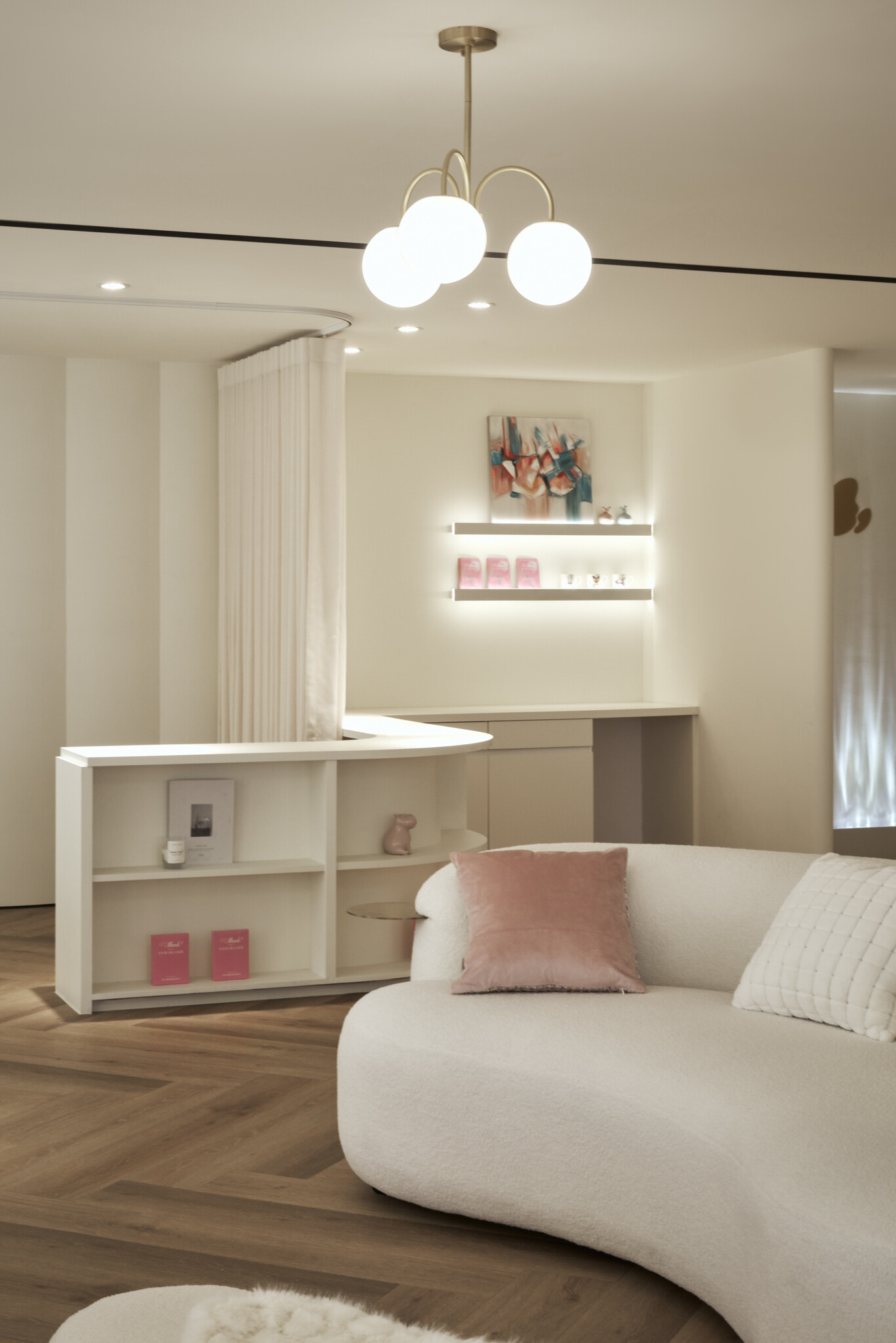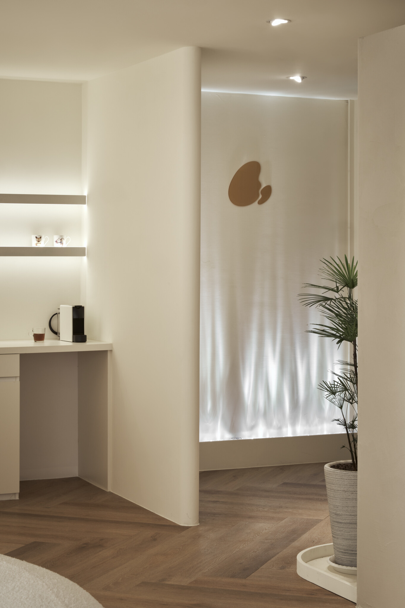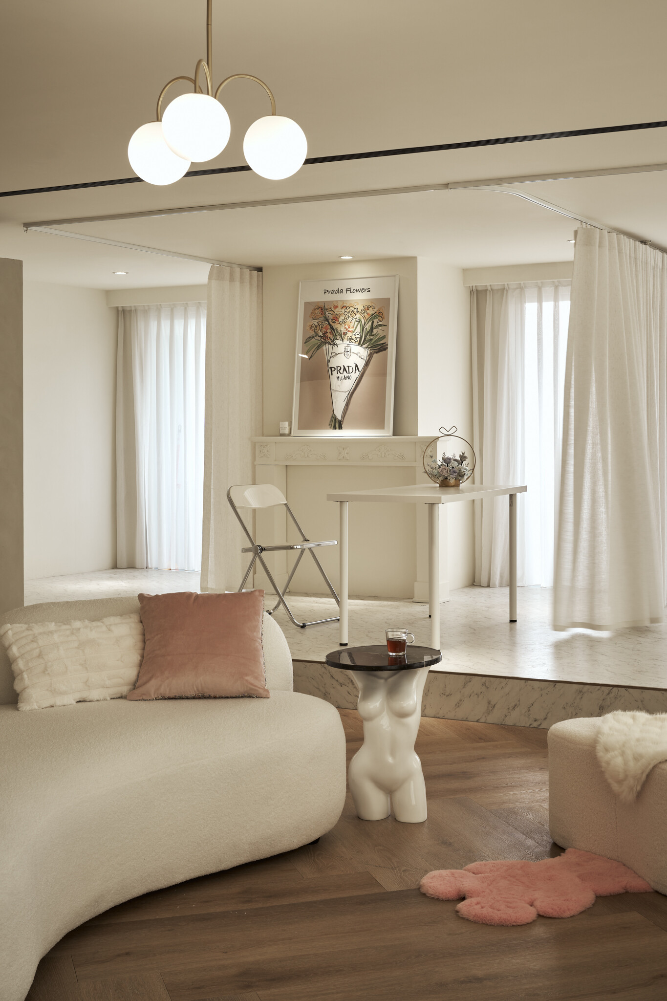 採用輕盈的紗簾作為場域間的主要區隔,在保持光線通透性的同時,也能給予顧客必要的隱私。