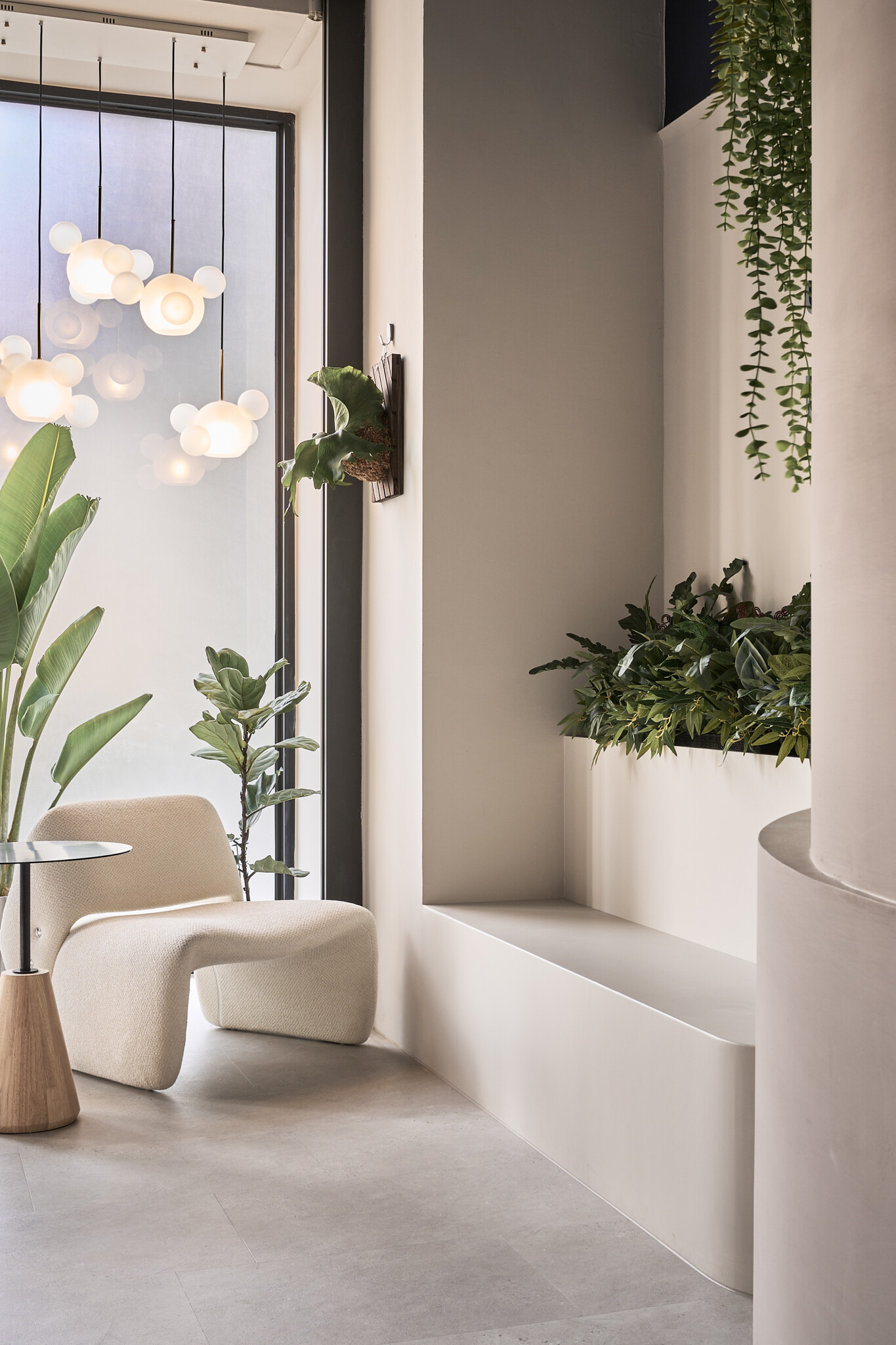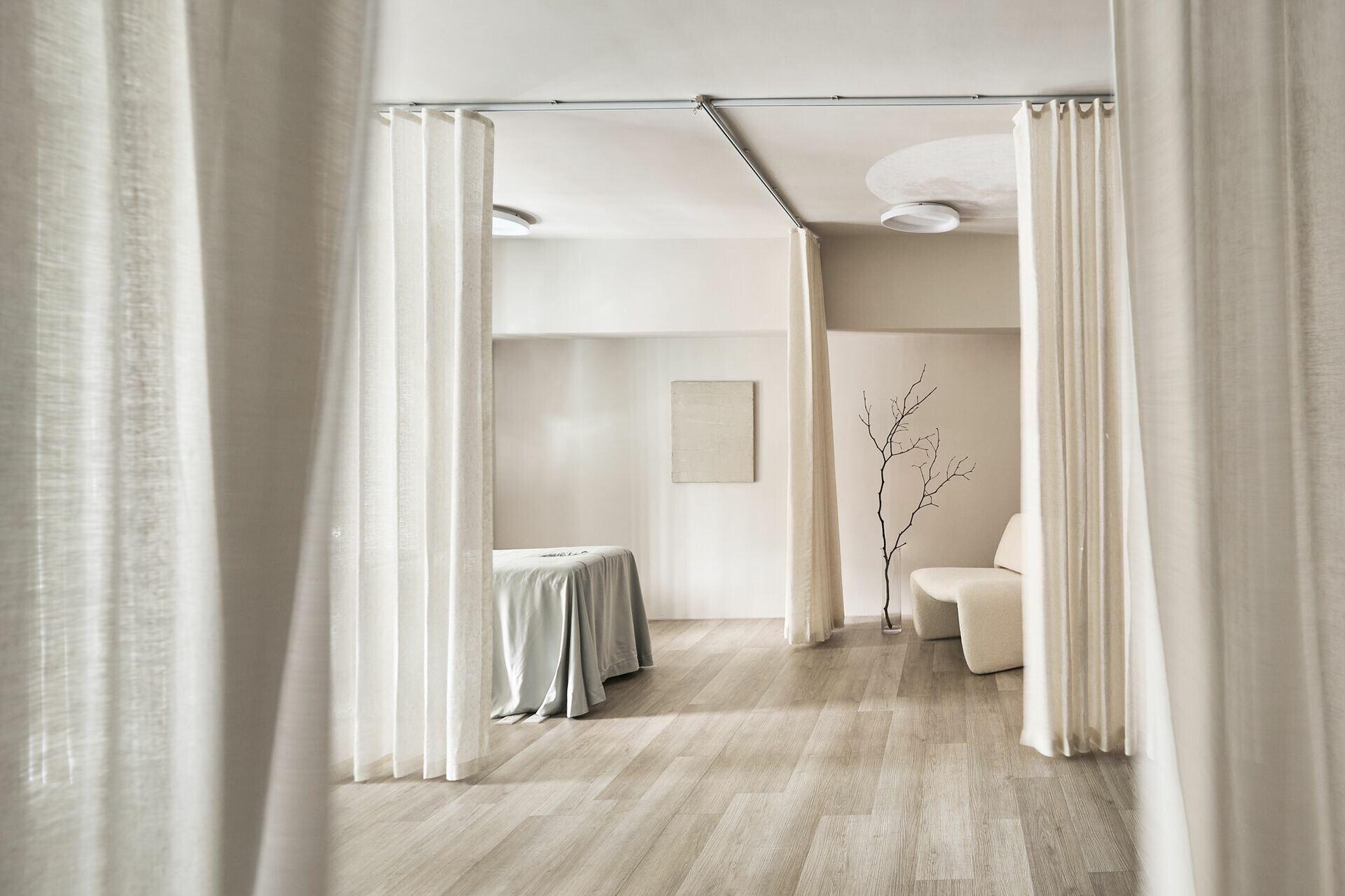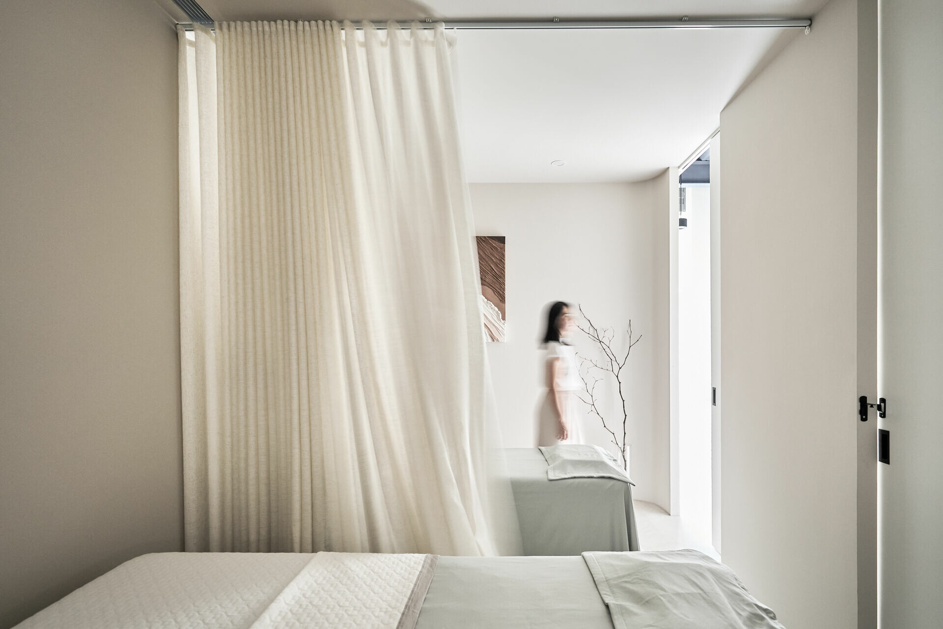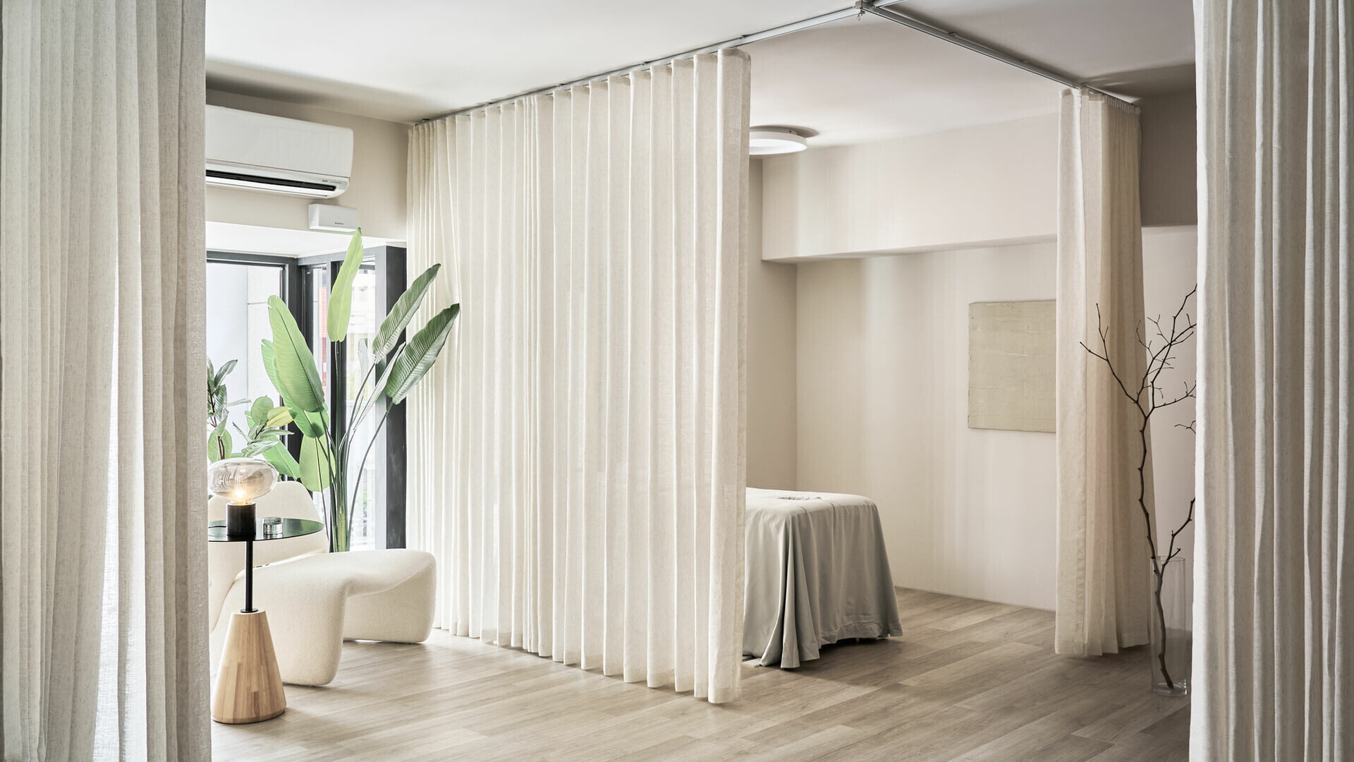 美容間選用棉麻材質的窗簾,凸顯其質樸與自然感。