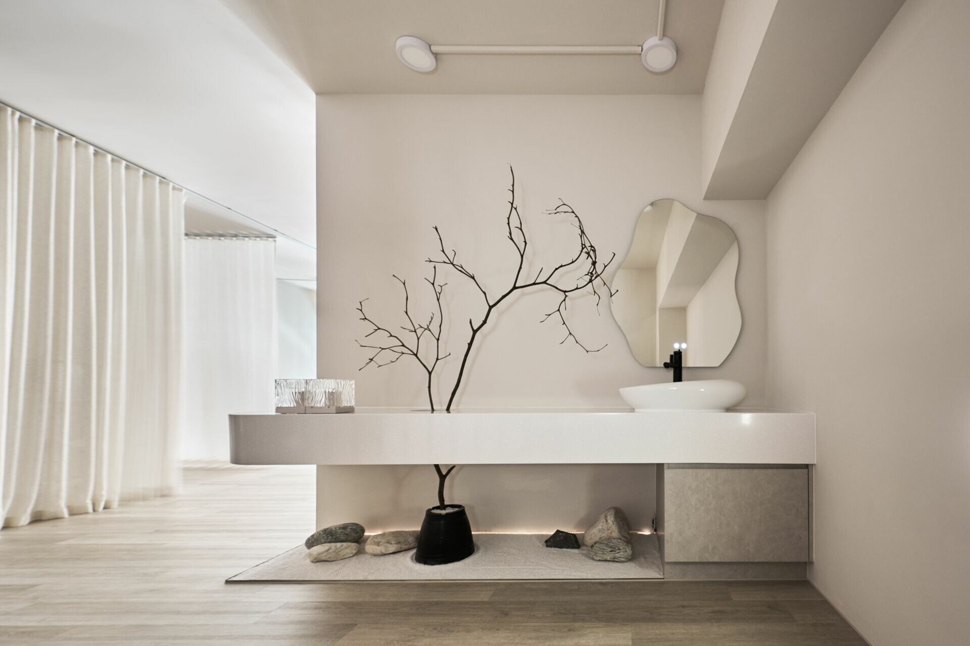 進入二樓後運用乾景呈現出寂靜的氛圍,割捨外界的紛擾。